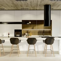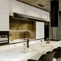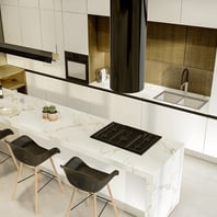 La Linea de Muebles de Cocina Cristal con puertas y frentes realizados en MDF y terminaciones en Laca Poliuretanica de alta resistencia en color blanco brillante o semi-mate.